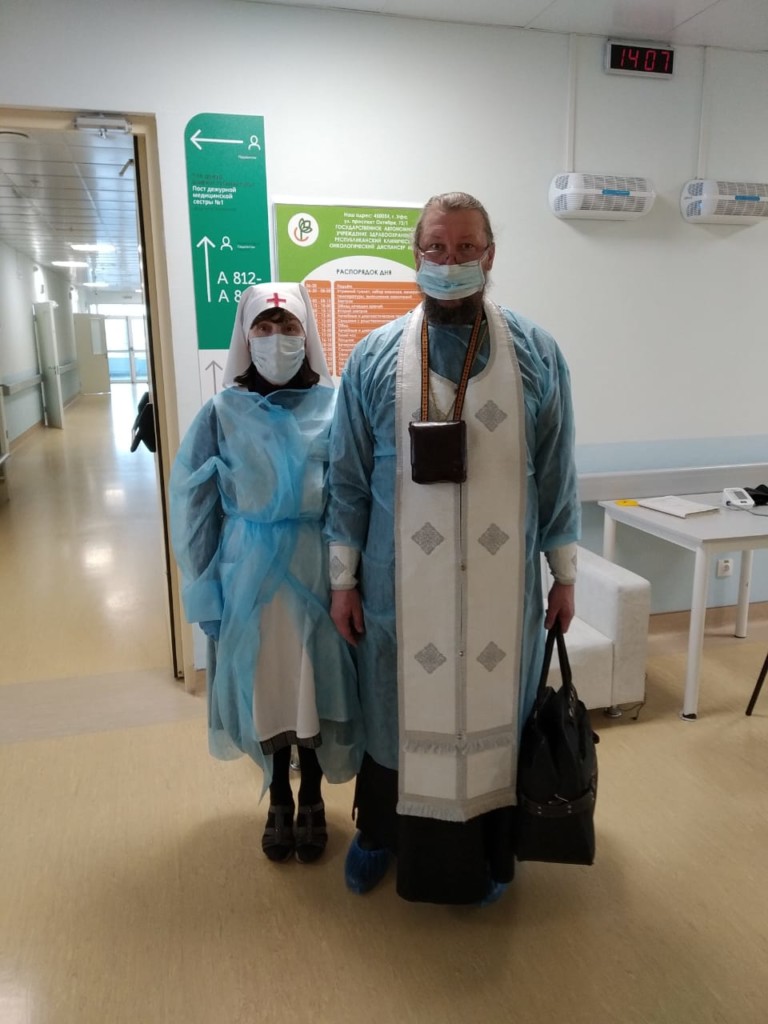 Синодальный отдел по церковной благотворительности и социальному служению выделил деньги на тестирование. Так протоиерей Александр Данилов и сестра милосердия Руфина Доценко смогли заранее сдать тесты и 13 февраля 2021 г. впервые после долгого перерыва посетили больных. Они обошли пять этажей Онкодиспансера. В этот день причастились 15 человек.