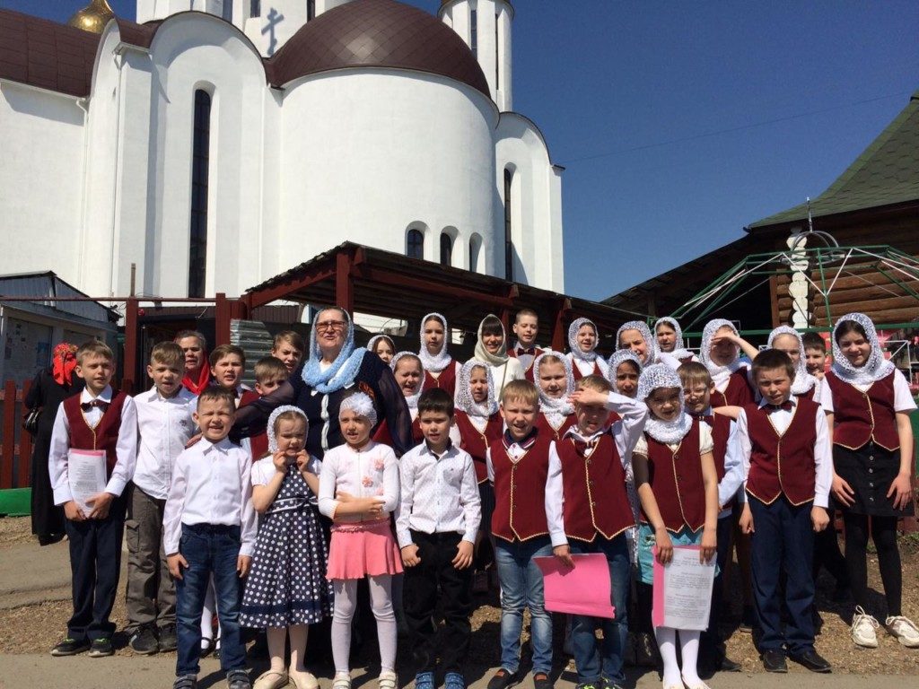 Пасха! Особенно радуется человек празднику в детстве. Ведь недаром Христос сказал: «Будьте как дети». И как не радоваться в великий и святой праздник Воскресения Христова! Сегодня дети поют тропарь Пасхи. Концерт открыла директор ВШ Хабирова Л. М., поздравив прихожан с праздником. И зазвучали прекрасные праздничные песни! Как солнце светит и греет нас, так свет души и радость сердца исходит от Спасителя нашего. От сердца к сердцу, от души к душе торопится радостная весть – Христос Воскрес! Воскрес однажды, чтобы навсегда озарить мир светом Своего Воскресения! В исполнении детского хора, под руководством Мальцевой Л. П., в программе выступления прозвучали песни о Воскресении Христовом, святой блаженной Матроне Московской, о празднике Победы. Вся школа участвовала в подготовке к этому празднику: разучивали песни, спектакль, готовили подарки для ветеранов ко дню Победы. Самые маленькие воспитанники ВШ прочитали стихи о Дне Победы.