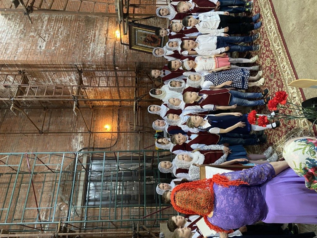 Дети из Воскресной школы, по случаю Дня Победы, для ветеранов и прихожан храма подготовили концерт. Руководитель хора Мальцева Л.П. в программу выступления включила песни о Воскресении Христовом, песню о святой блаженной МатронеМосковской и к празднику Победы. Вся школа участвовала в подготовке к этому празднику: разучивали песни, стихи, готовили подарки для ветеранов ко дню Победы, даже самые маленькие не остались в стороне! Как выразительно они читали стихи!